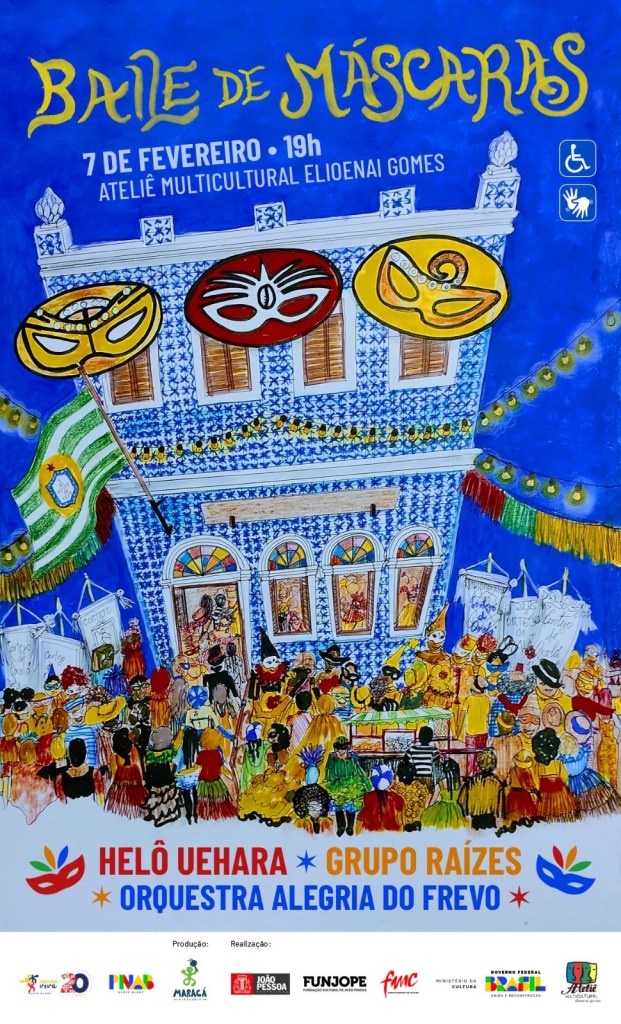 O Ateliê Multicultural Elioenai Gomes promove nesta sexta, 7, a partir das 19h, o Baile de Máscaras, um evento gratuito e que dá início às ações pré-carnavalescas do Ateliê, localizado no Centro Histórico de João Pessoa. Três atrações estão confirmadas: a cantora Helô Uehara, o Grupo Raízes e a Orquestra Alegria do Frevo.