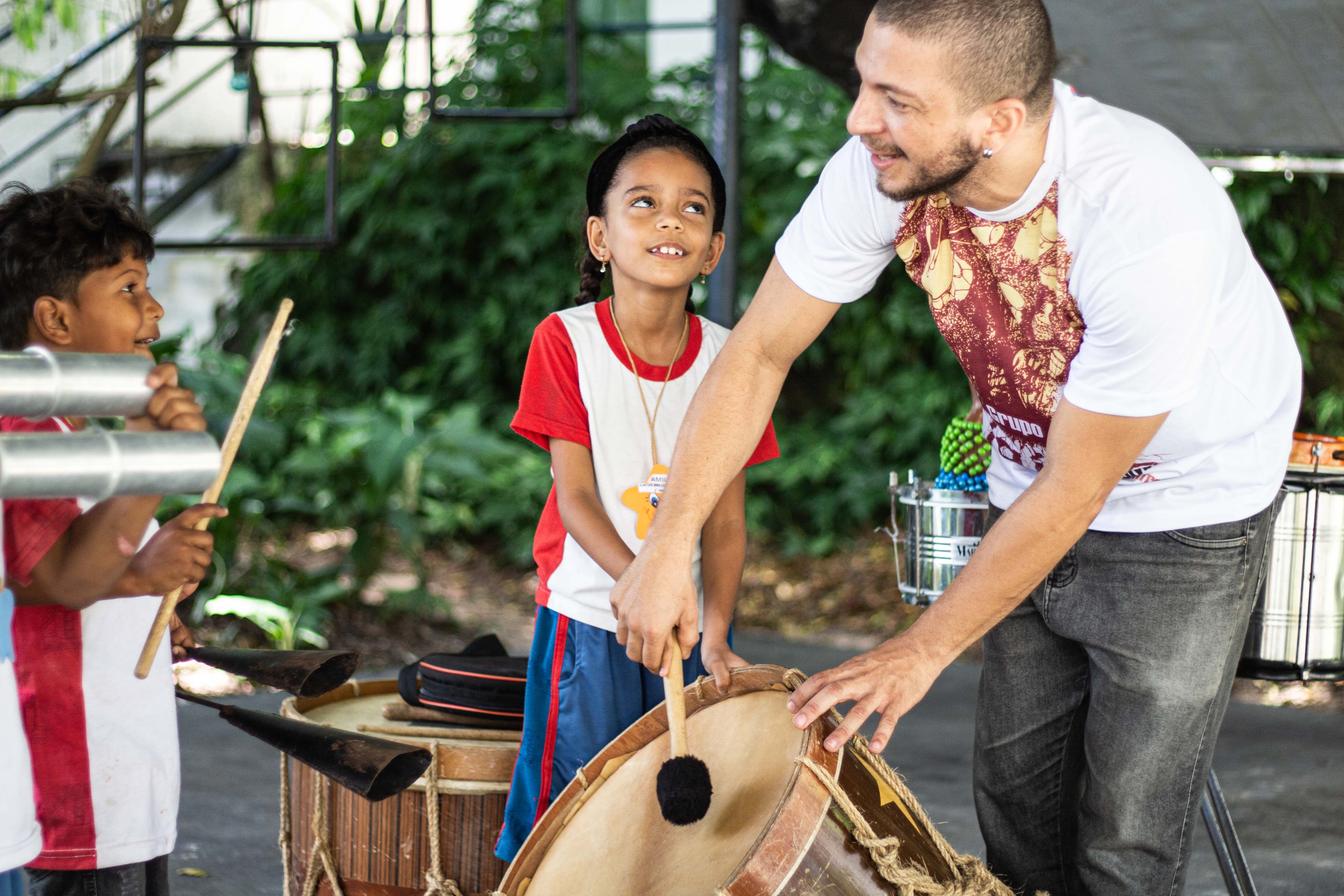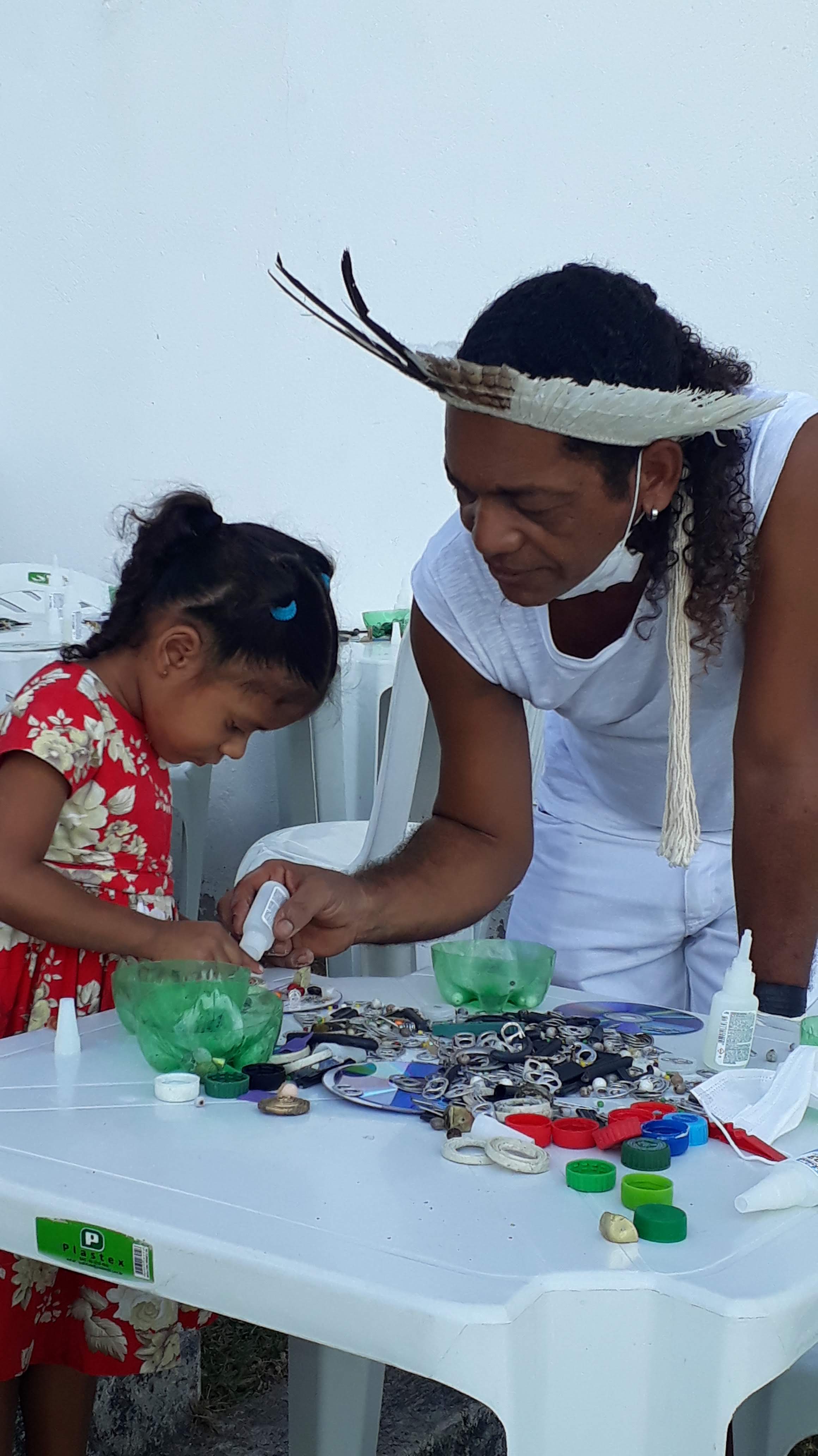 Durante os acolhimentos, foram oferecidas rodas de conversa e oficinas de dança afro, música, percussão, música para banda marcial, contação de histórias, brincadeiras populares e criação de peças artísticas a partir da utilização de materiais recicláveis.